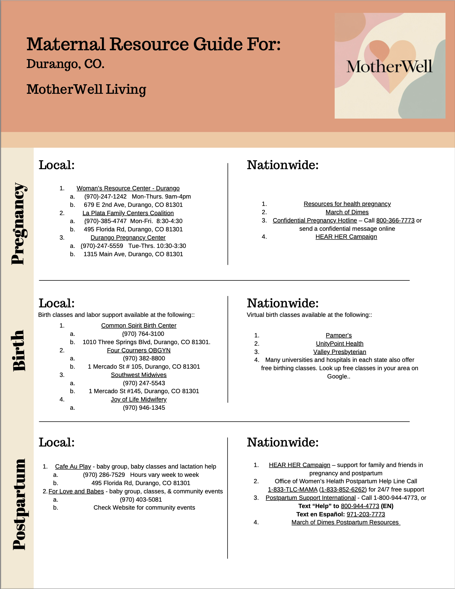 Looking for Resources? Explore the pregnancy, labor, postpartum, and mental health resources available in Durango, CO. Download PDF
